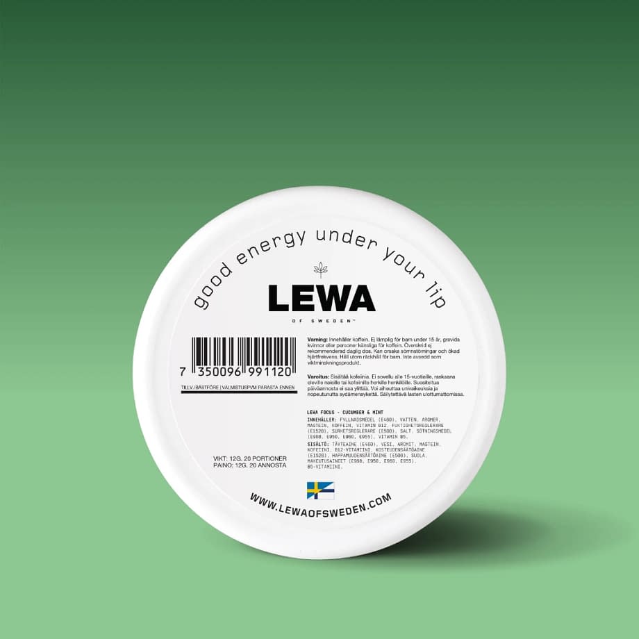 Caffeine increases alertness and improves concentration, helping you stay focused during both training and work. It also provides a quick energy boost and can support fat burning by increasing the body’s metabolic rate. One pouch of LEWA FOCUS contains 20 mg of caffeine.